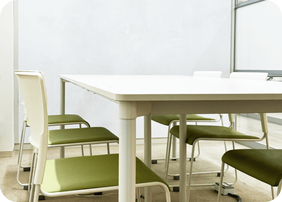 100㎡の広々とした空間。セミナー、交流会、勉強会など用途に合わせて自由に利用可能です。コワーキング、オフィス利用の会員様は5,000円〜、一般のご利用は8,000円〜でご利用いただけます。